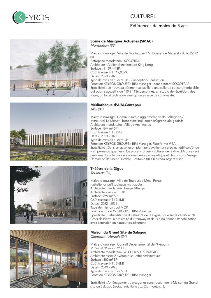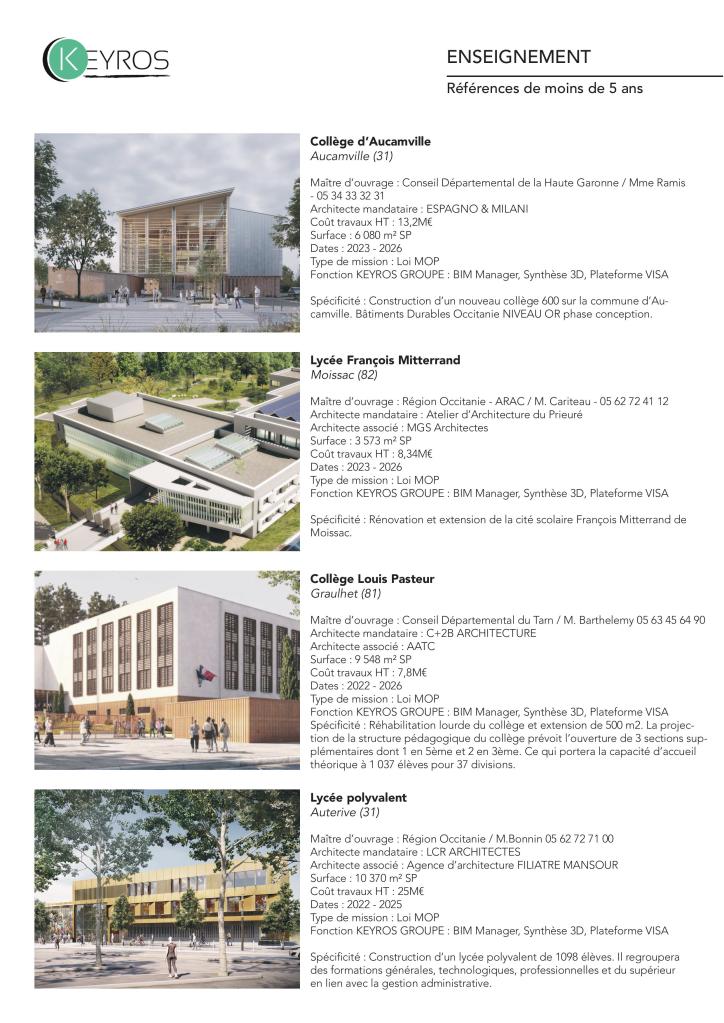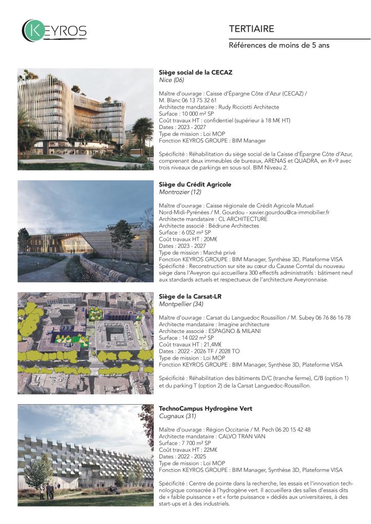 Nos projets sont différents d’envergure, nous agissons sur tous les domaines d’activités dans toute la France que ce soit sur le BIM ou la synthèse.